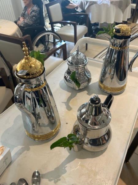 Ce mois-ci, notre journée à thème était "L'Orient". Lors d'un précédent atelier créatif, les résidents avaient fabriqué un joli décor de guirlandes, pour la salle de restaurant, à base de papier crépon.